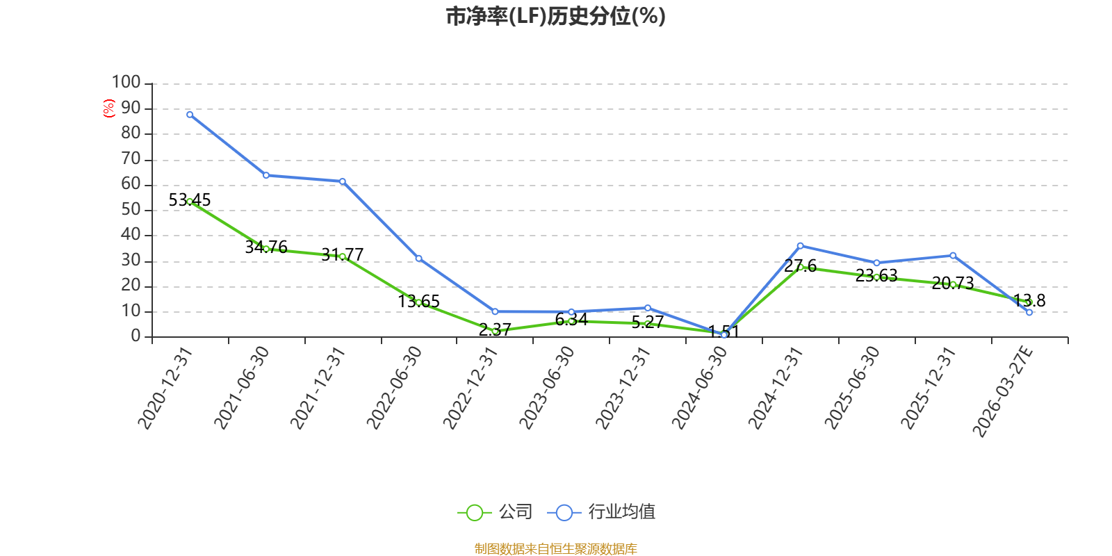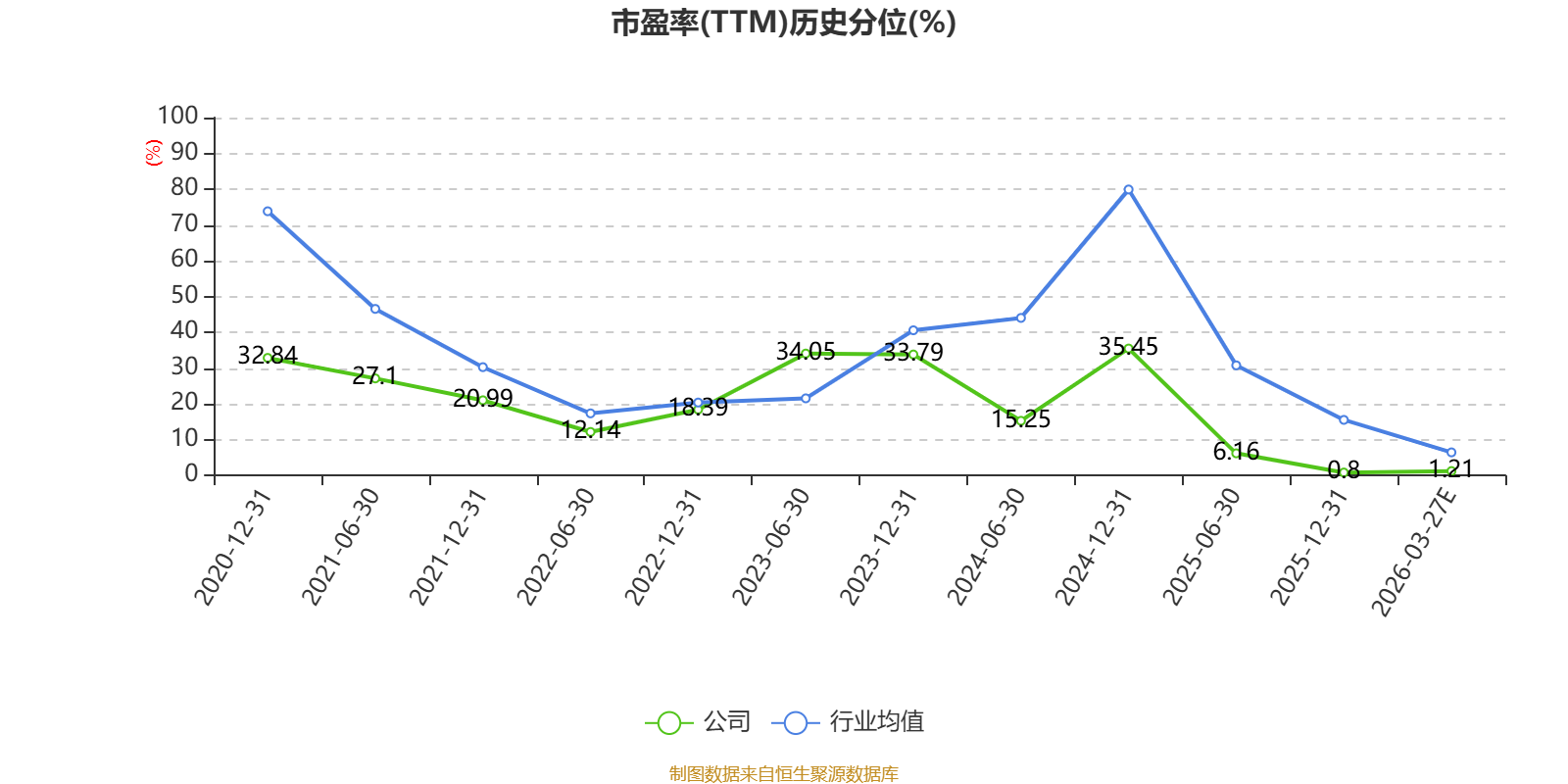 市盈率、市净率为负时,不显示当期分位数,会导致折线图中断。