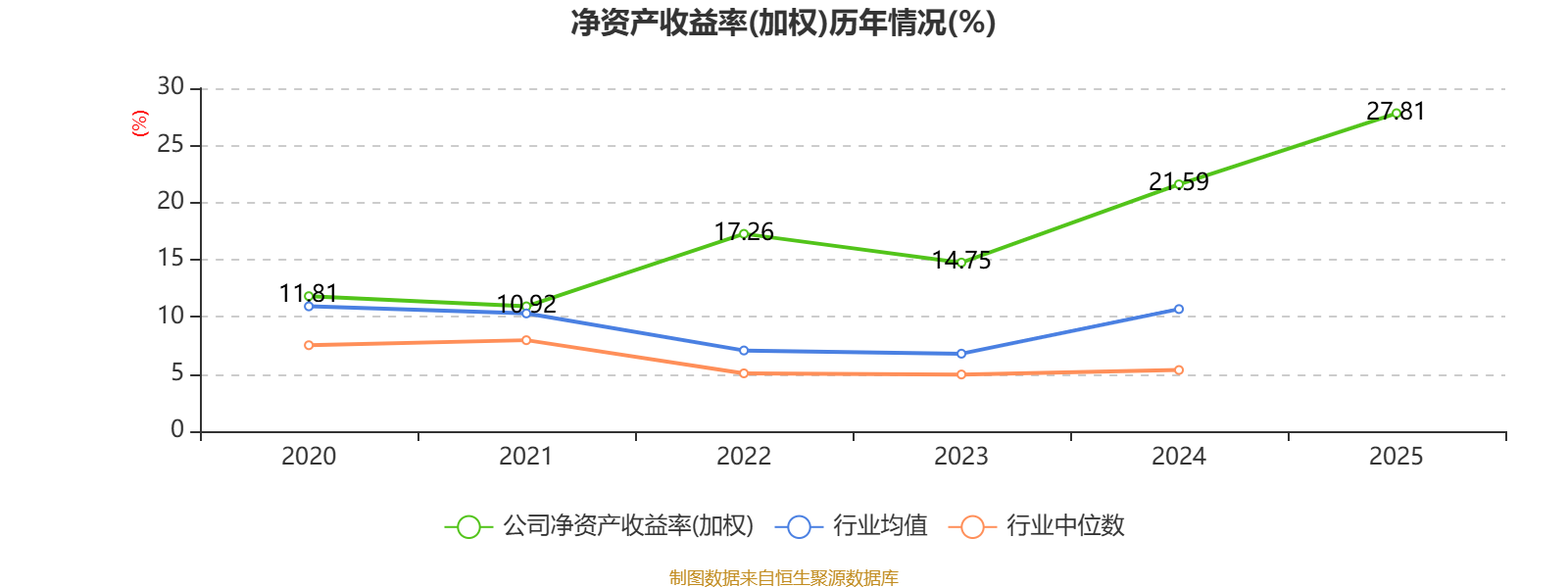 数据显示,2025年公司加权平均净资产收益率为27.81%,较上年同期上升6.22个百分点。