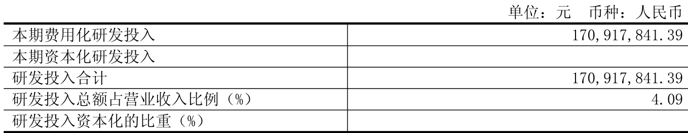 2025年全年,公司研发投入金额为1.71亿元,同比下降8.31%;研发投入占营业收入比例为4.09%,相比上年同期上升0.05个百分点。此外,公司全年研发投入资本化率为0%。