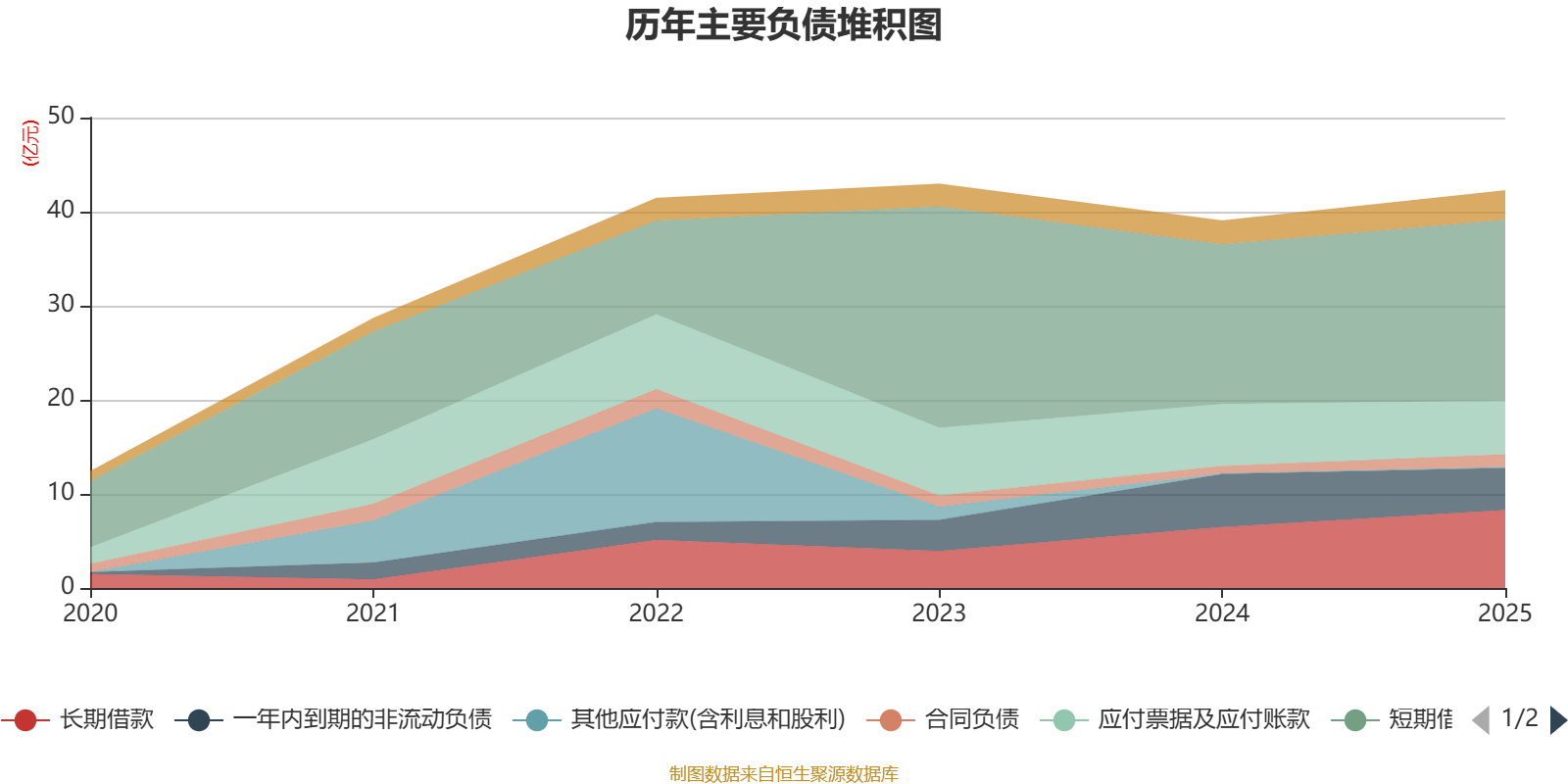 负债重大变化方面,截至2025年末,公司一年内到期的非流动负债较上年末减少20.47%,占公司总资产比重下降2.45个百分点;长期借款较上年末增加27.98%,占公司总资产比重上升2.19个百分点;应付票据及应付账款较上年末减少12.93%,占公司总资产比重下降2.07个百分点;短期借款较上年末增加13.15%,占公司总资产比重上升1.72个百分点。