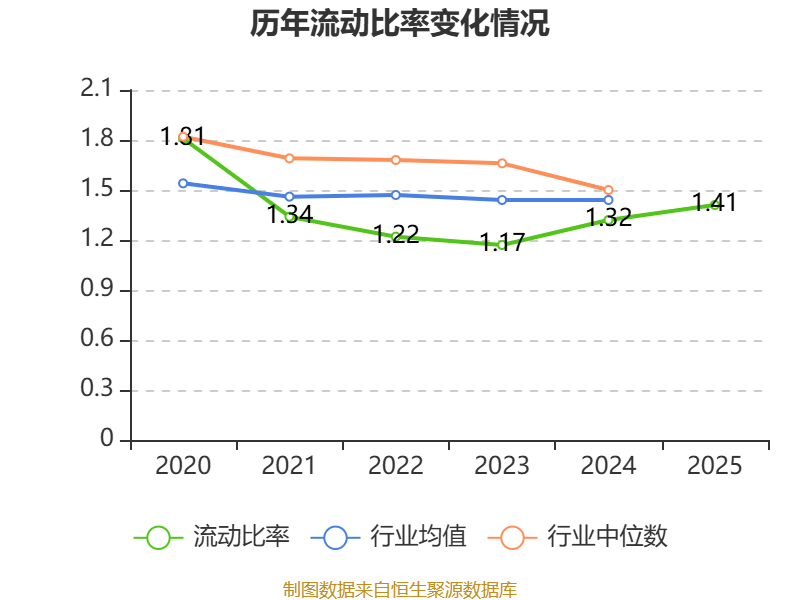 2025年,公司流动比率为1.41,速动比率为1.06。