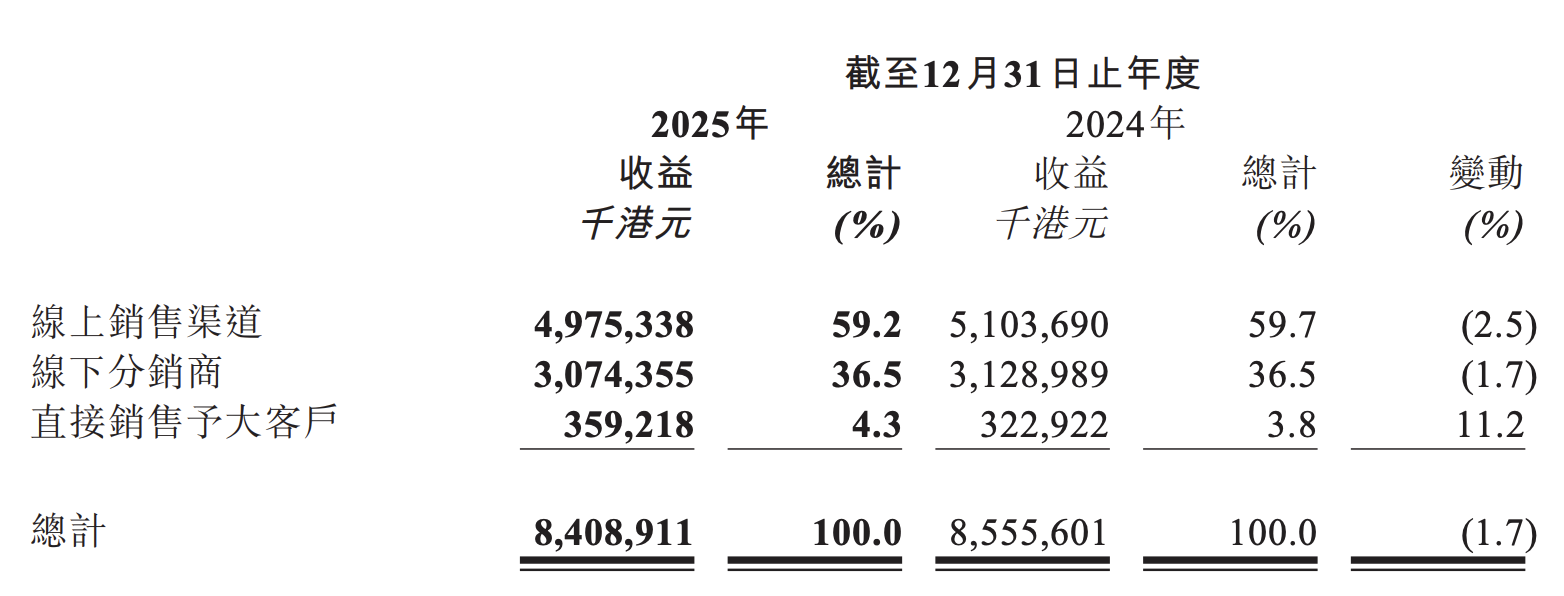 公司优化营销及全渠道销售,集团的销售及分销开支由截至2024年12月31日止年度约50.49亿港元下降约11.5%至截至2025年12月31日止年度约44.68亿港元。