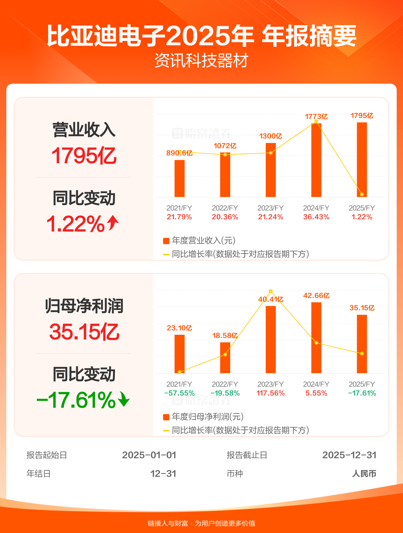 【图解财报】比亚迪电子年报盈利35.15亿人民币,同比减少17.61%