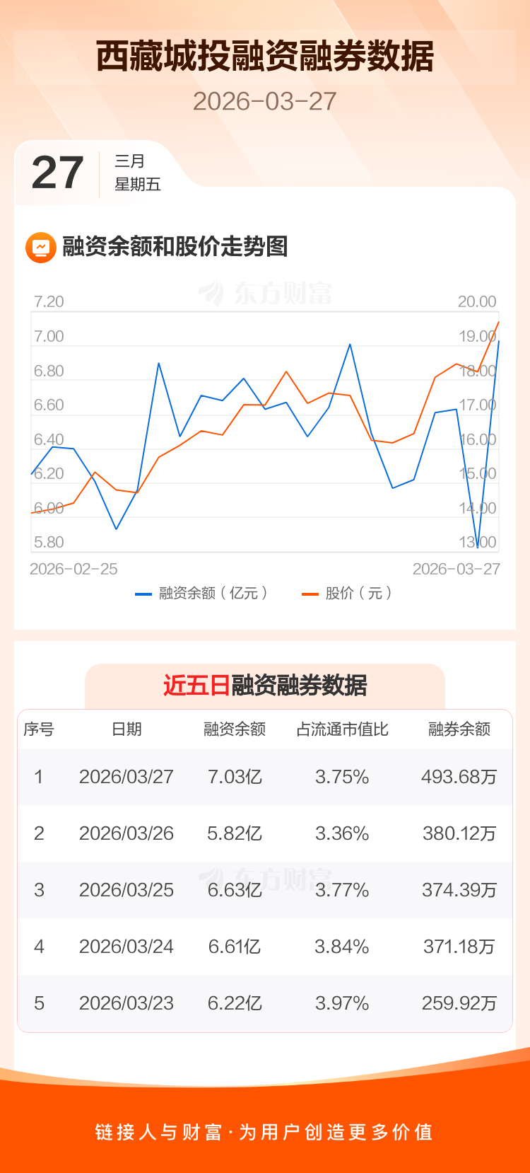 交易所最新数据显示,西藏城投于2026年3月27日获融资买入1.85亿元,融资偿还6479.38万元,当日融资净买入1.2亿元。目前,该股融资余额7.03亿,占流通市值比例为3.75%。