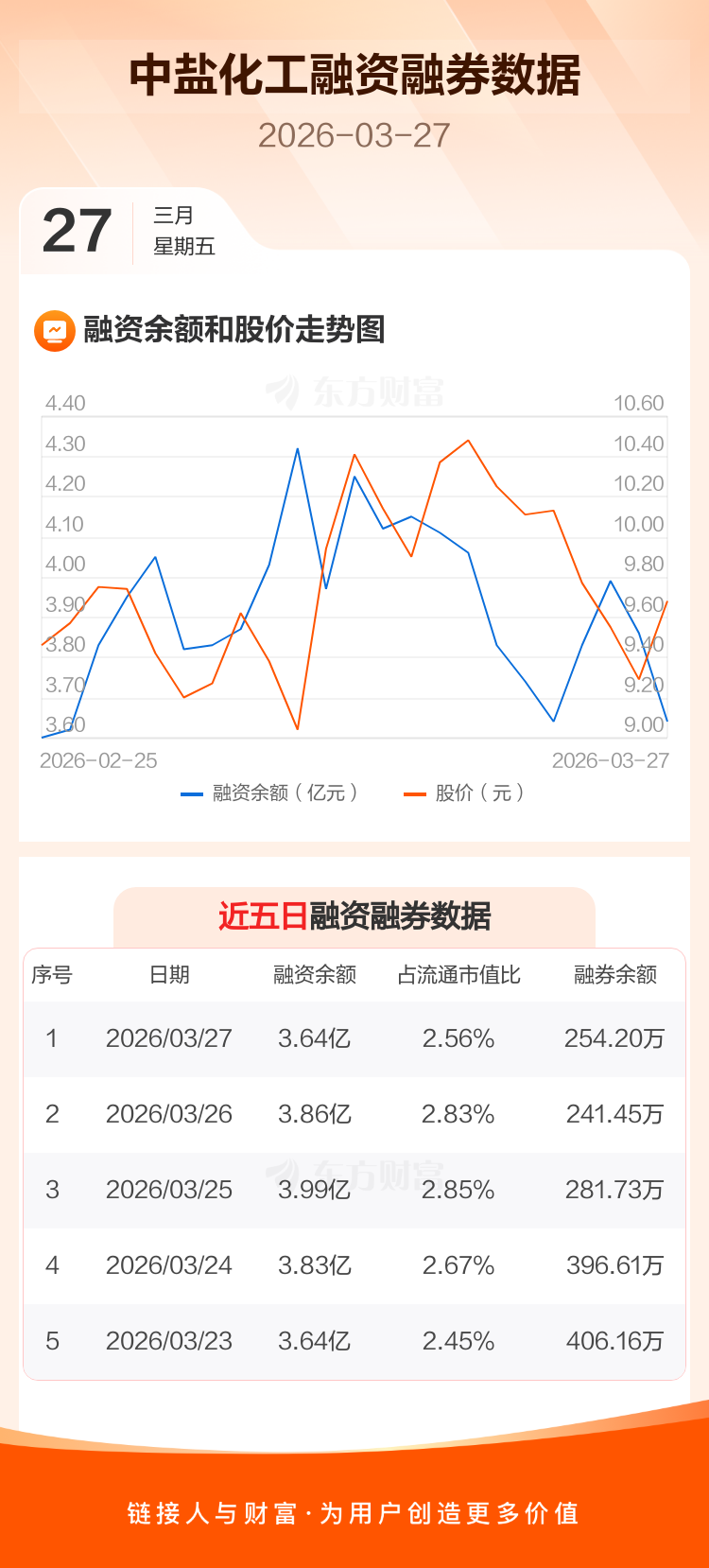 交易所最新数据显示,中盐化工于2026年3月27日获融资买入3566.90万元,融资偿还5760.61万元,当日融资净偿还2193.72万元。目前,该股融资余额3.64亿,占流通市值比例为2.56%。