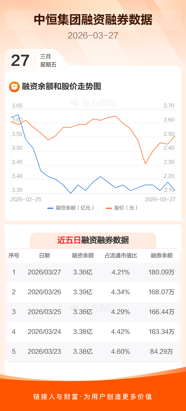 交易所最新数据显示,中恒集团于2026年3月27日获融资买入1086.23万元,融资偿还1300.42万元,当日融资净偿还214.19万元。目前,该股融资余额3.36亿,占流通市值比例为4.21%。