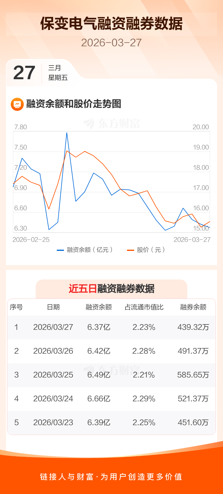 交易所最新数据显示,保变电气于2026年3月27日获融资买入4510.63万元,融资偿还4941.63万元,当日融资净偿还431万元。目前,该股融资余额6.37亿,占流通市值比例为2.23%。