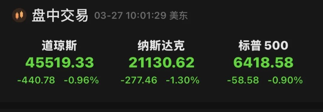 美股全线跳水,截至发稿,道琼斯指数跌0.96%,标普500指数跌0.9%,纳斯达克综合指数跌1.3%。