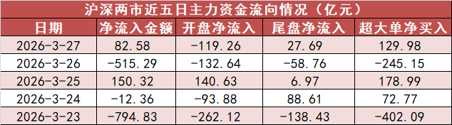 今日A股市场主力资金开盘净流出119.26亿元,尾盘净流入27.69亿元,A股市场全天资金净流入82.58亿元。