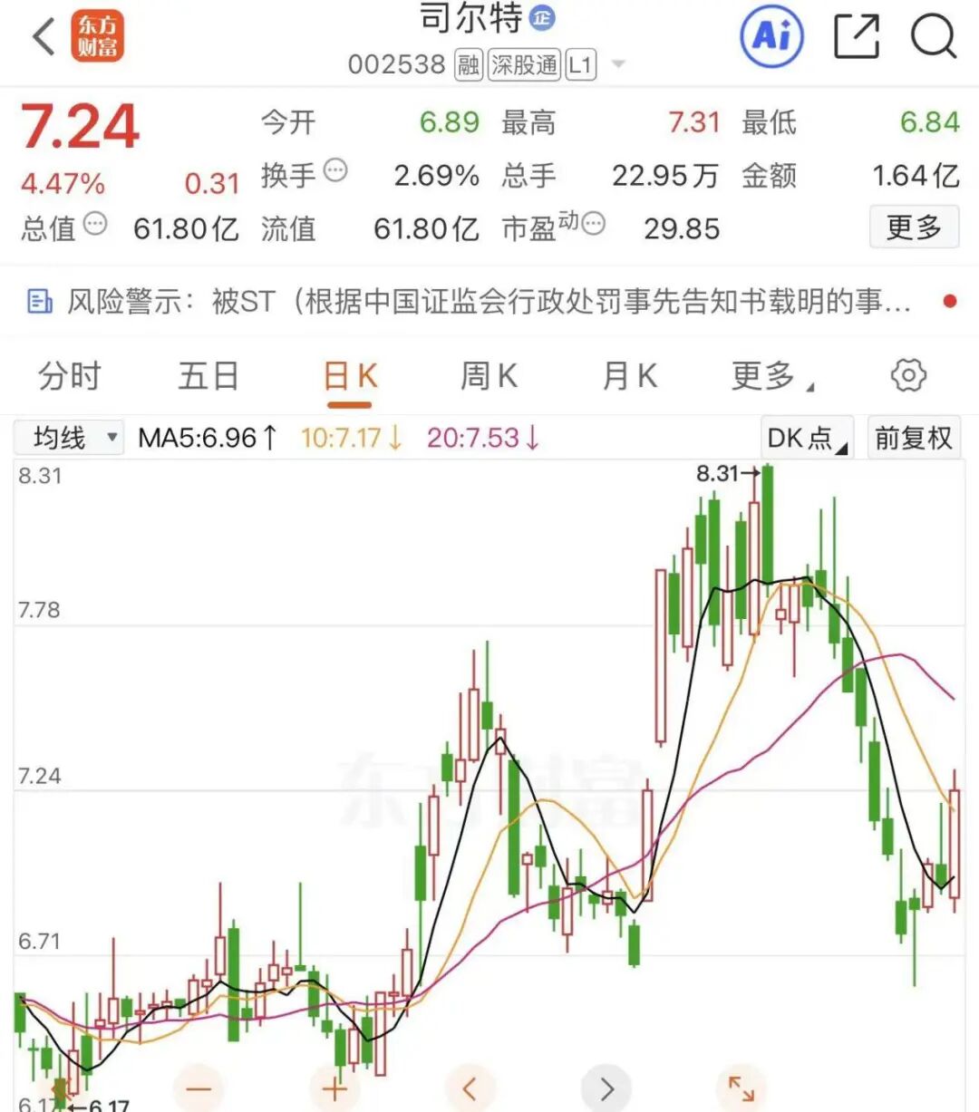 截至3月27日收盘,司尔特报7.24元/股,最新市值为61.80亿元。