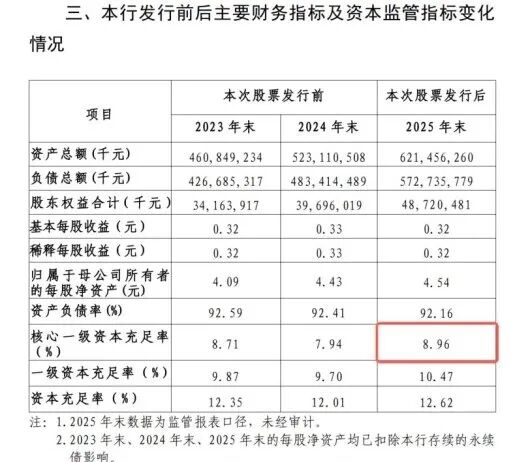 据公告披露,截至2025年末,湖北银行总资产达6214.56亿元,较年初增长18.8%。增资完成后,湖北银行核心一级资本充足率提升至8.96%,一级资本充足率、资本充足率分别达10.47%、12.62%。