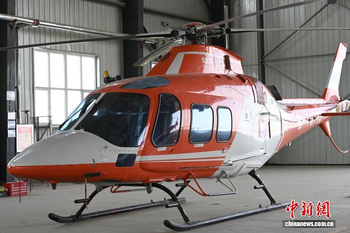 3月19日,在张掖丹霞通用航空机场维护保养的景区直升机。戴文昌摄