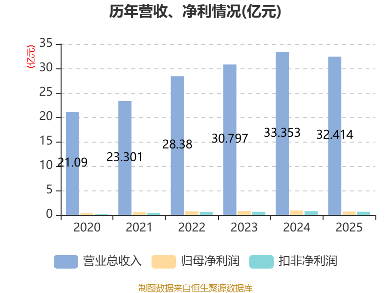 2025年全年,公司研发投入金额为1.04亿元,同比增长0.16%;研发投入占营业收入比例为3.21%,相比上年同期上升0.1个百分点。此外,公司全年研发投入资本化率为0%。