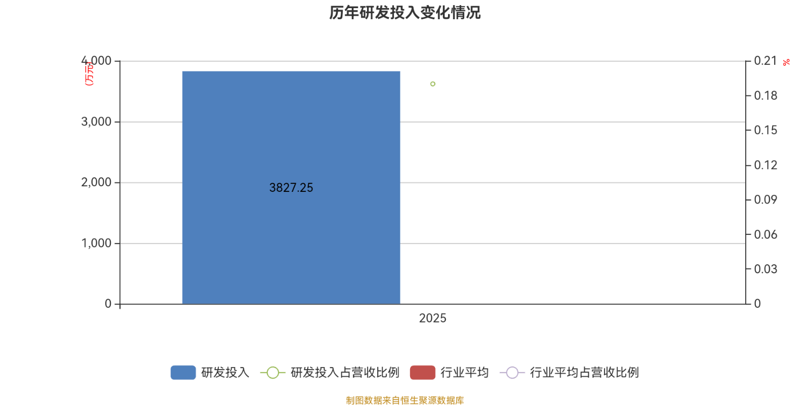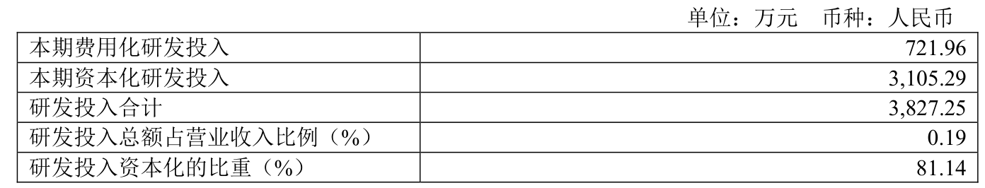 2025年全年,公司研发投入金额为3827.25万元;研发投入占营业收入比例为0.19%。此外,公司全年研发投入资本化率为81.14%。