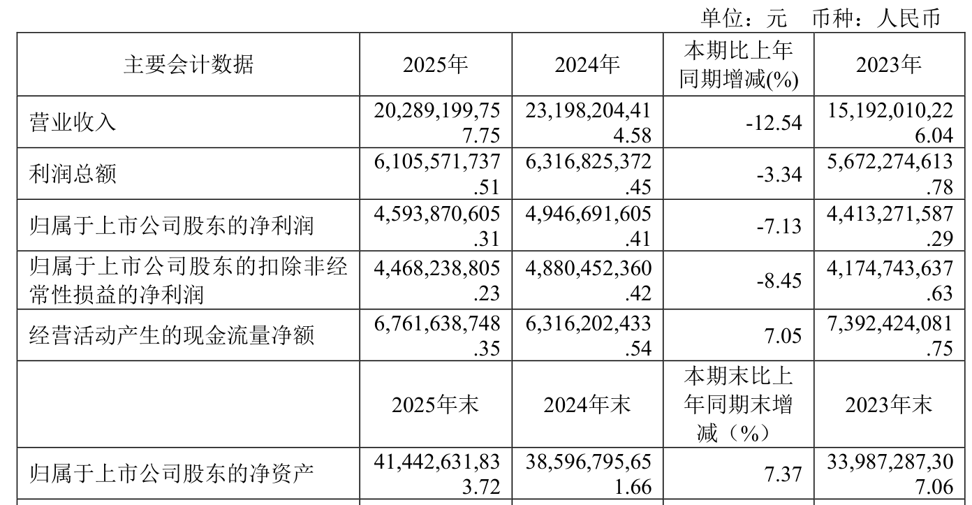 中证智能财讯宁沪高速(600377)3月30日披露2025年年度报告。2025年,公司实现营业总收入202.89亿元,同比下降12.54%;归母净利润45.94亿元,同比下降7.13%;扣非净利润44.68亿元,同比下降8.45%;经营活动产生的现金流量净额为67.62亿元,同比增长7.05%;报告期内,宁沪高速基本每股收益为0.9119元,加权平均净资产收益率为11.48%。公司2025年度分配预案为:拟向全体股东每10股派现4.9元(含税)。