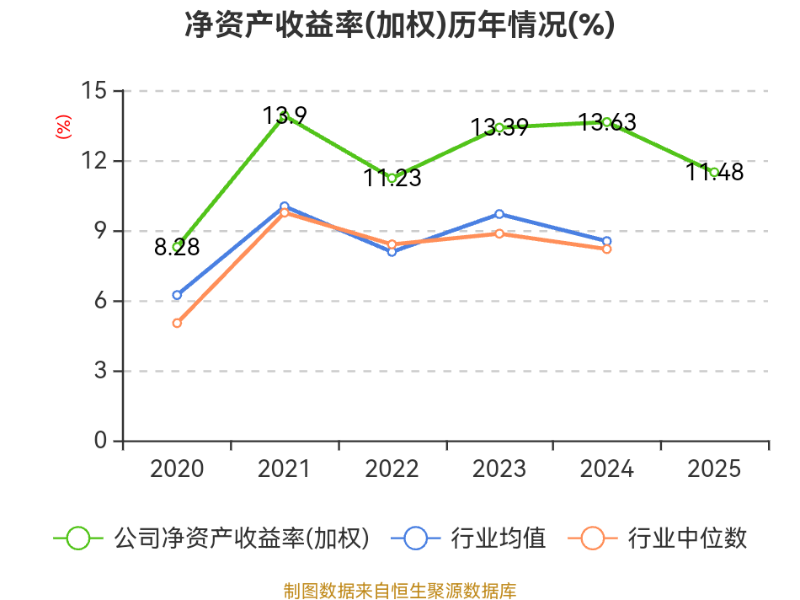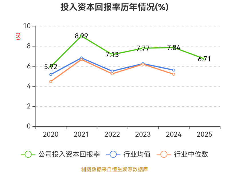 数据显示,2025年公司加权平均净资产收益率为11.48%,较上年同期下降2.15个百分点。公司2025年投入资本回报率为6.71%,较上年同期下降1.13个百分点。