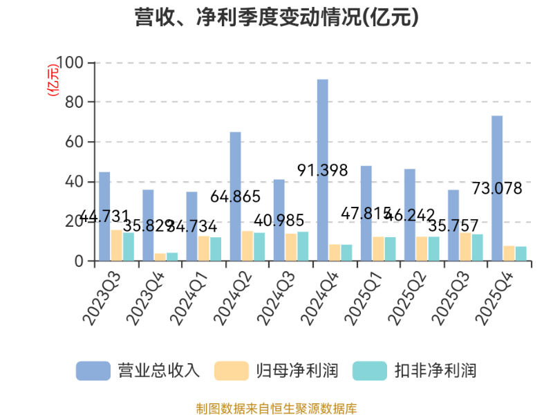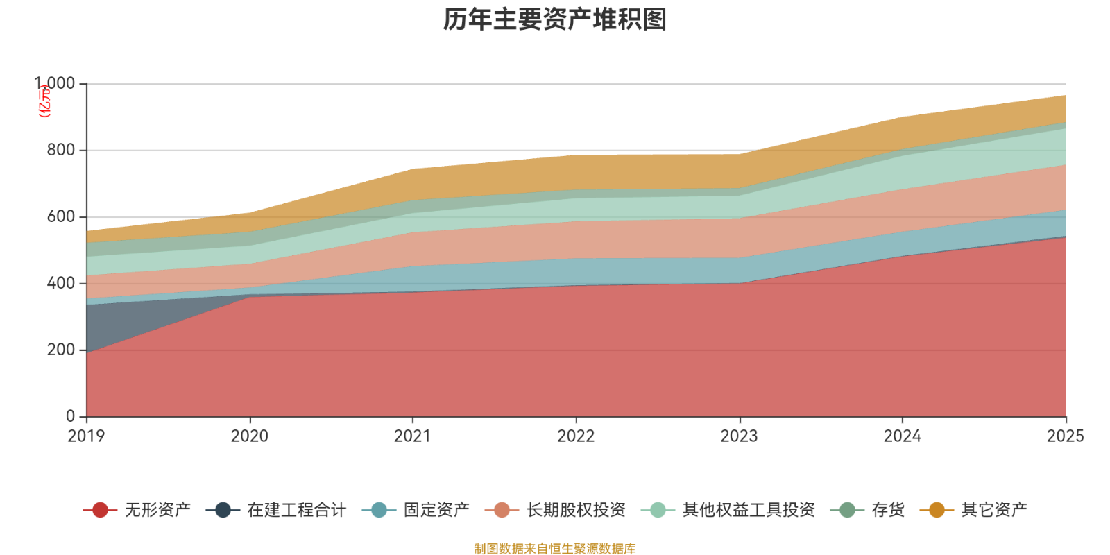 资产重大变化方面,截至2025年末,公司无形资产较上年末增加11.73%,占公司总资产比重上升2.24个百分点;交易性金融资产合计较上年末减少41.03%,占公司总资产比重下降1.56个百分点;在建工程合计较上年末增加284.21%,占公司总资产比重上升0.37个百分点;其他非流动金融资产较上年末减少9.05%,占公司总资产比重下降0.34个百分点。