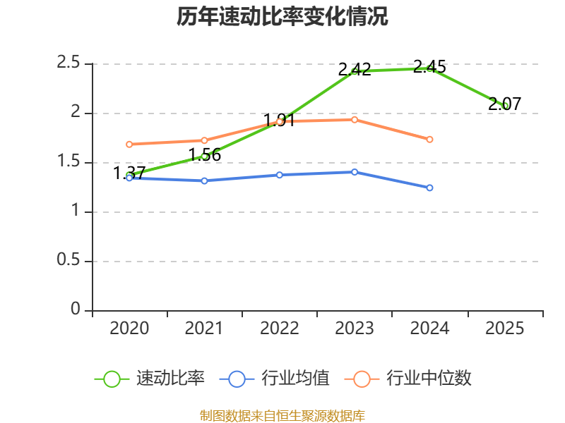 2025年,公司流动比率为2.44,速动比率为2.07。