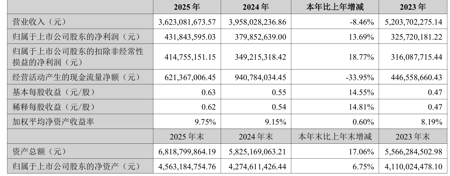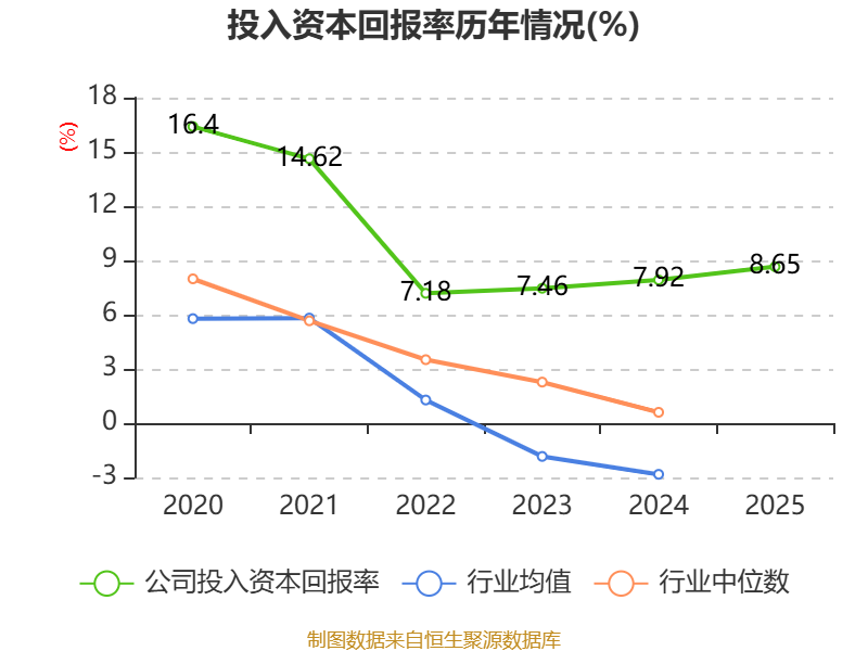 数据显示,2025年公司加权平均净资产收益率为9.75%,较上年同期上升0.6个百分点。公司2025年投入资本回报率为8.65%,较上年同期上升0.73个百分点。