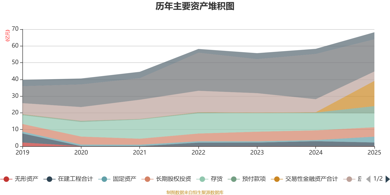 资产重大变化方面,截至2025年末,公司交易性金融资产合计较上年末增加8114.38%,占公司总资产比重上升21.78个百分点;货币资金较上年末减少28.87%,占公司总资产比重下降18.25个百分点;预付款项较上年末增加1086.88%,占公司总资产比重上升5.8个百分点;存货较上年末减少19.41%,占公司总资产比重下降5.48个百分点。