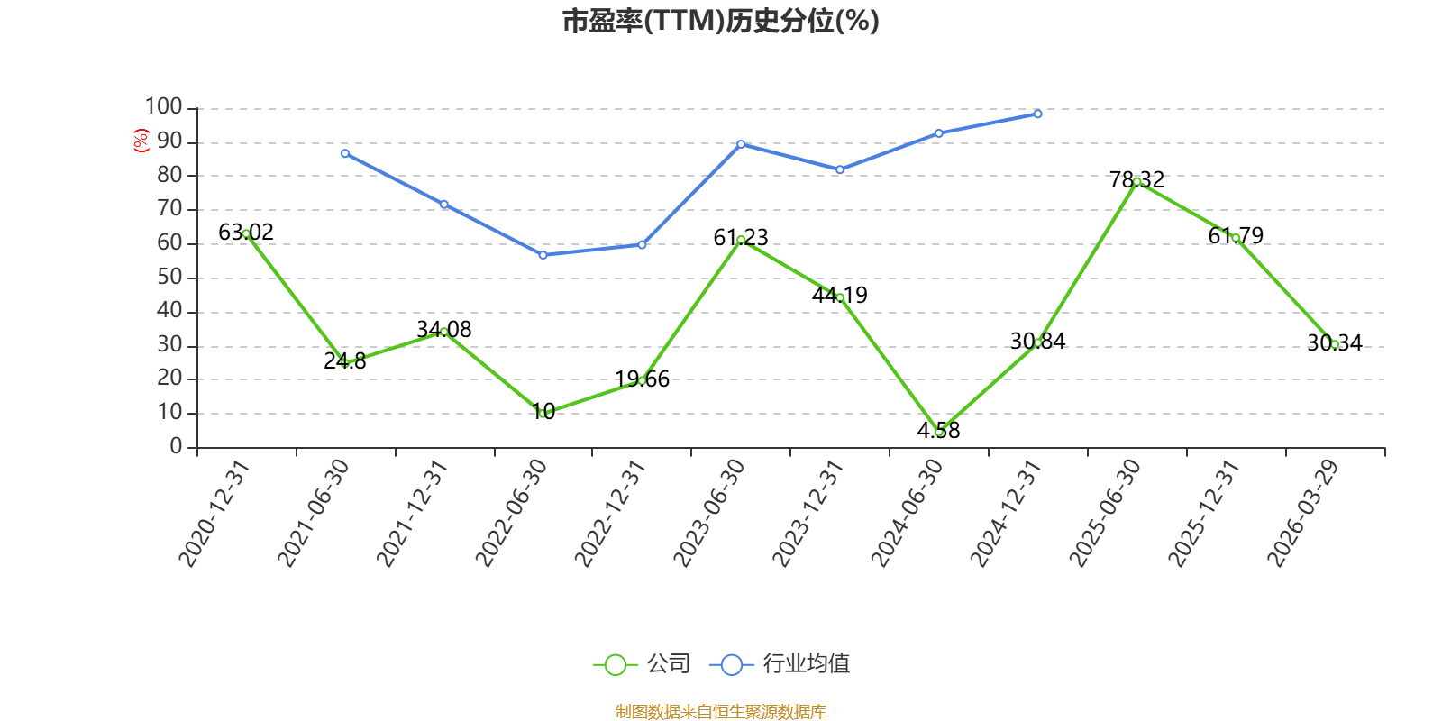 市盈率、市净率为负时,不显示当期分位数,会导致折线图中断。