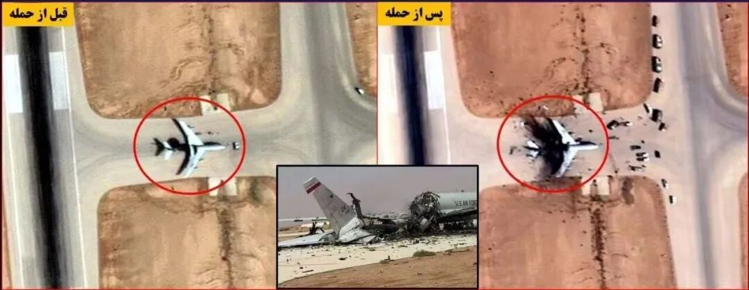 △伊朗方面公布的E-3预警机被摧毁卫星图
