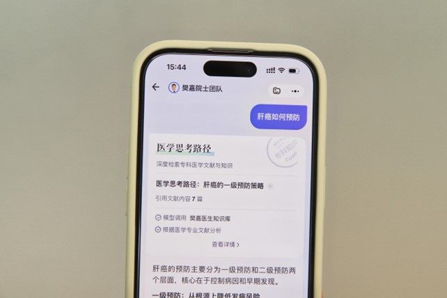 依托国家人工智能应用中试基地(医疗领域)的平台赋能,复旦大学附属中山医院、樊嘉院士团队携手蚂蚁健康率先开展了AI驱动的肝病“防筛诊治康”全周期服务探索。目前,聚焦肝病专科的“樊嘉院士团队智能体”已在蚂蚁阿福App上线,依托樊嘉院士团队审核与指导构建的专科知识库,可向公众提供全天候、个性化的肝病科普、症状初筛等服务,助力患者早筛早诊,让更多人从治病转向防病。
