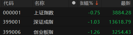 三大指数集体低开 沪指跌0.75%