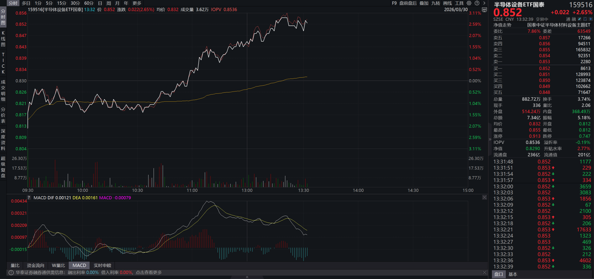 半导体设备ETF国泰(159516)午后大涨2%,聚焦刻蚀、薄膜沉积、清洗、量测等核心设备环节,覆盖半导体设备与材料龙头,是把握本轮半导体上行周期的核心工具。