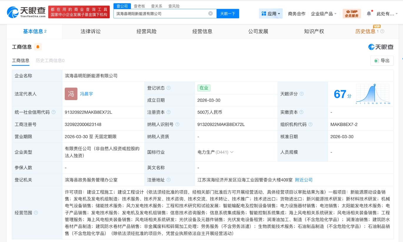 明阳智能在盐城成立新能源公司