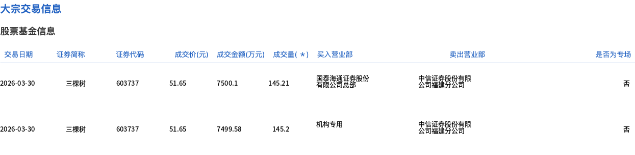 三棵树今日大宗交易折价成交290.41万股,成交额1.5亿元