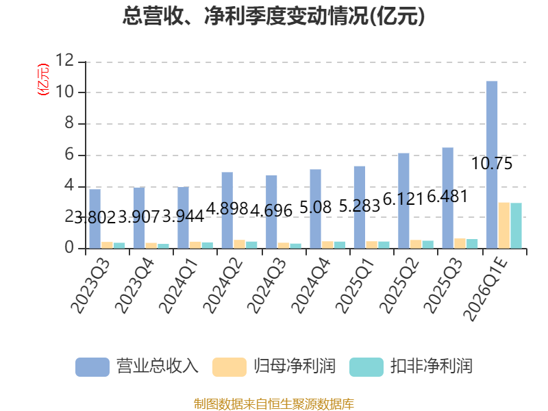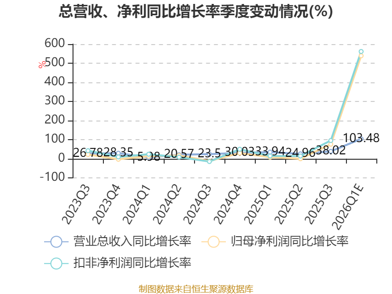中证智能财讯新锐股份(688257)3月30日晚间披露业绩预告,预计2026年一季度实现营业收入10亿元至11.5亿元,同比增长89.28%-117.68%;归母净利润2.65亿元至3.25亿元,同比增长473.74%-603.64%;扣非净利润预计2.62亿元至3.22亿元,同比增长493.37%-629.25%。以最新收盘价计算,市净率(LF)约7.78倍,市销率(TTM)约17.14倍。