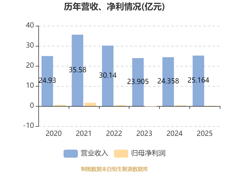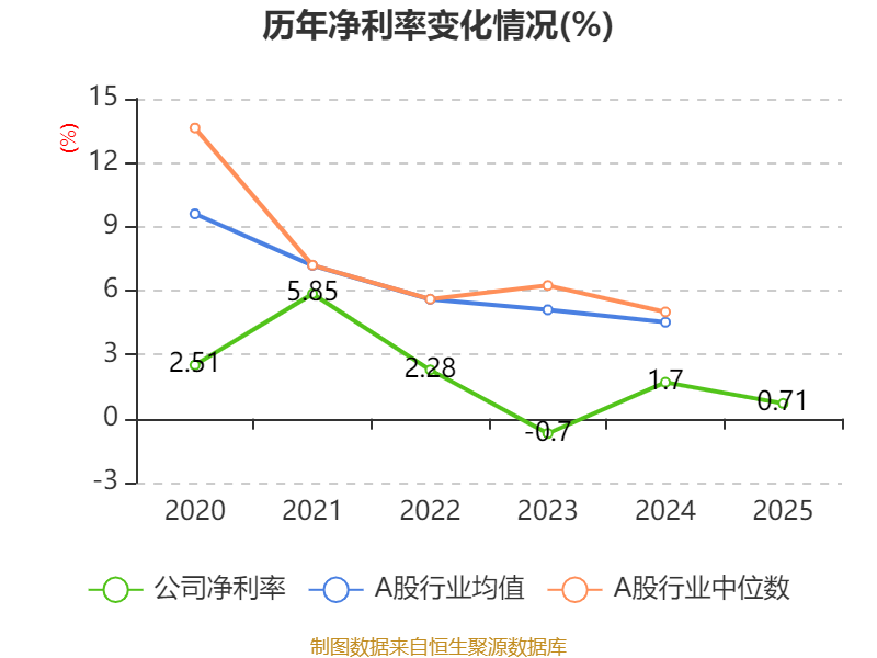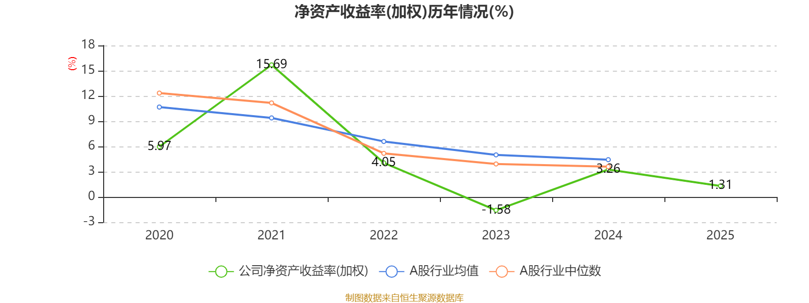 数据显示,2025年公司平均净资产收益率为1.31%,较上年同期下降1.95个百分点。