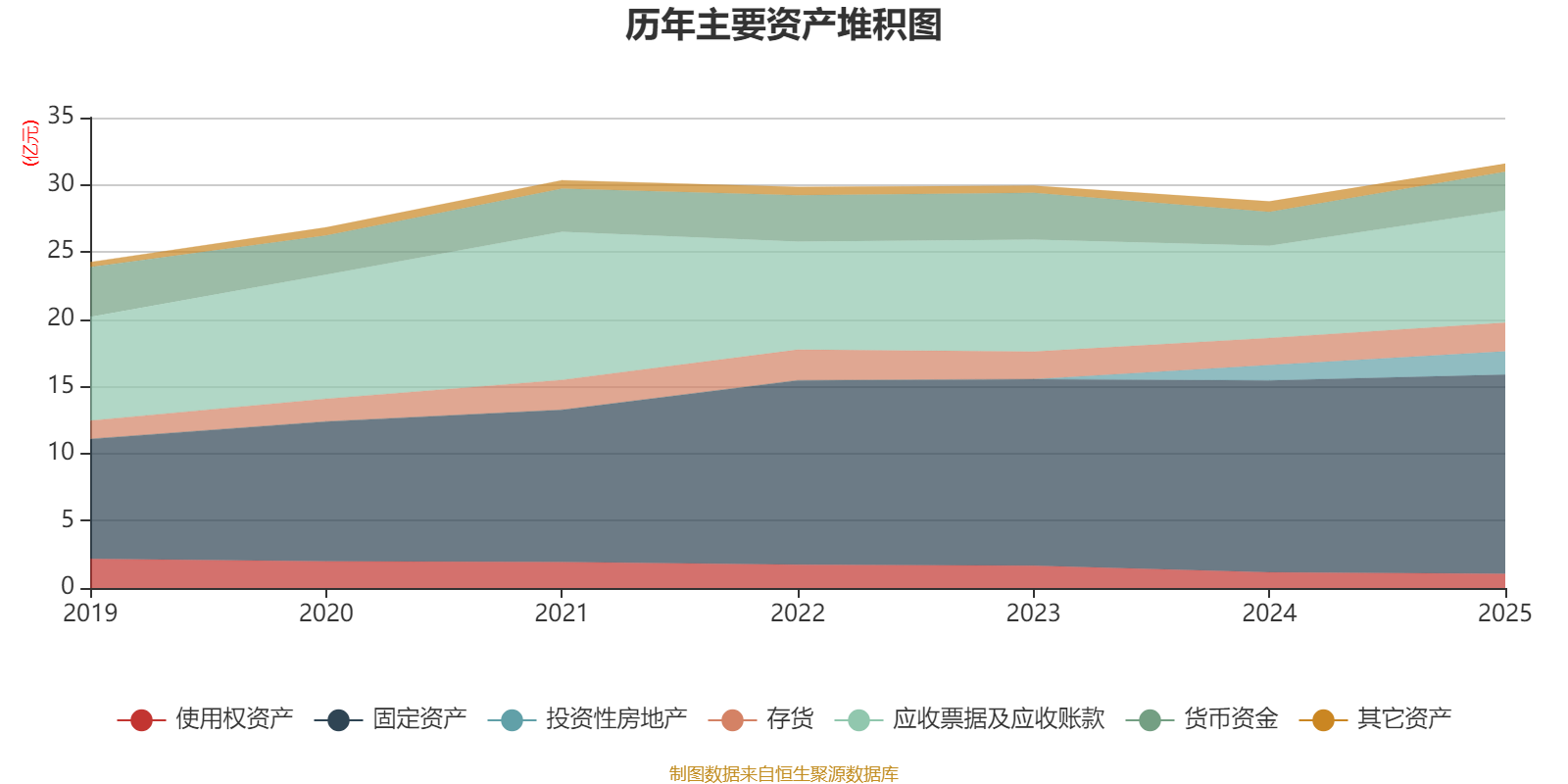 资产重大变化方面,截至2025年末,公司固定资产较上期末增加3.76%,占公司总资产比重下降2.72个百分点;应收票据及应收账款较上期末增加21.56%,占公司总资产比重上升2.56个百分点;投资性房地产较上期末增加50.96%,占公司总资产比重上升1.5个百分点;使用权资产较上期末减少9.18%,占公司总资产比重下降0.7个百分点。