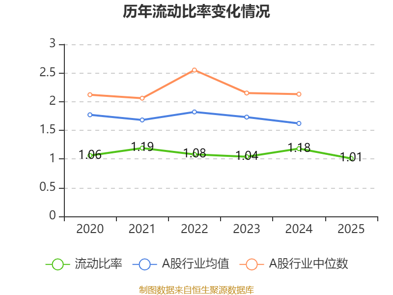 2025年,公司流动比率为1.01,速动比率为0.85。