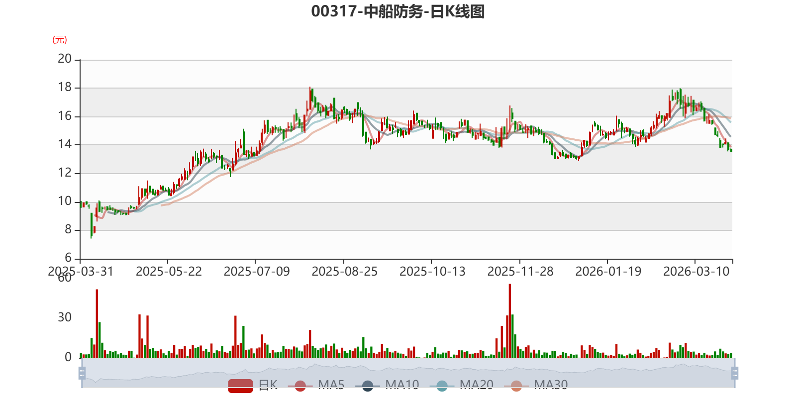 以3月29日收盘价计算,中船防务目前市盈率(TTM)约17.17倍,市净率(TTM)约0.95倍,市销率(TTM)约0.84倍。