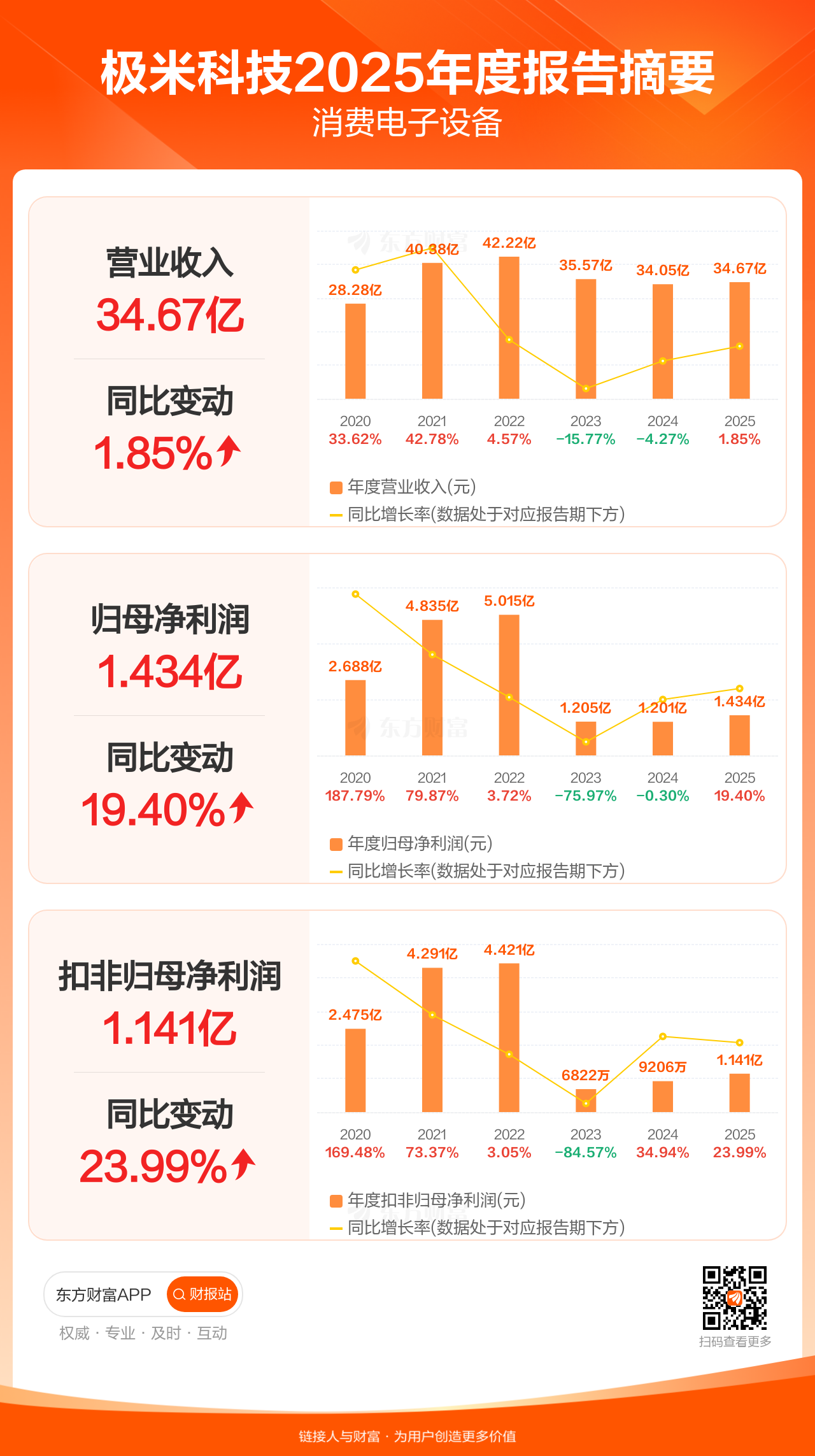 图解财报:极米科技全年归母净利润1.43亿元,同比增长19.40%