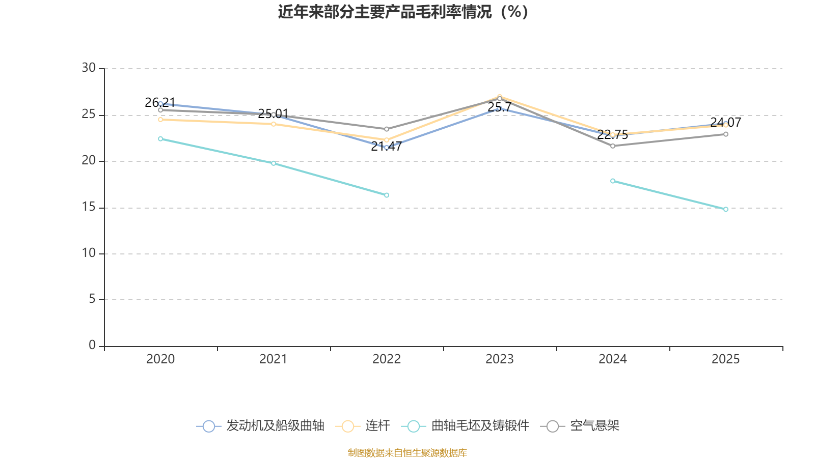 资料显示,公司主营业务包括曲轴、连杆、铸锻件、空气悬架主要业务板块。