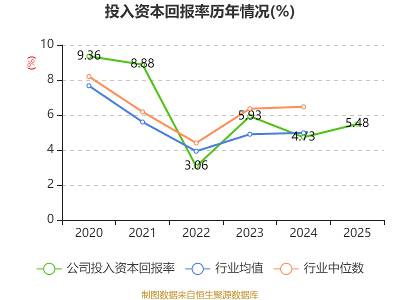 数据显示,2025年公司加权平均净资产收益率为6.06%,较上年同期上升0.51个百分点。公司2025年投入资本回报率为5.48%,较上年同期上升0.75个百分点。