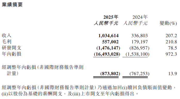 壁仞科技:2025年收入10.35亿元 同比增长207.2%