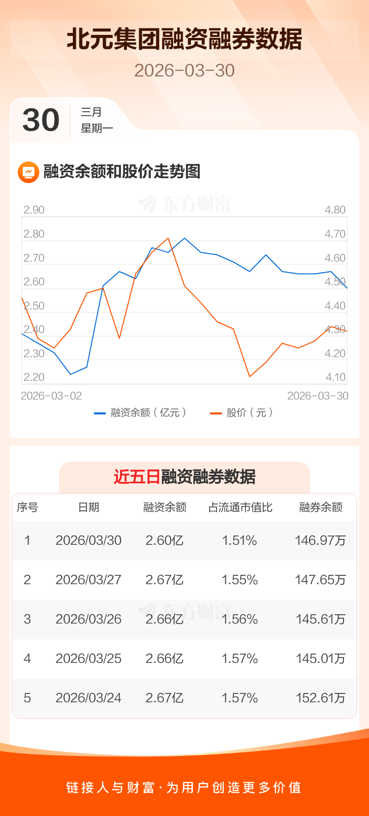 交易所最新数据显示,北元集团于2026年3月30日获融资买入1023.63万元,融资偿还1738.93万元,当日融资净偿还715.3万元。目前,该股融资余额2.60亿,占流通市值比例为1.51%。