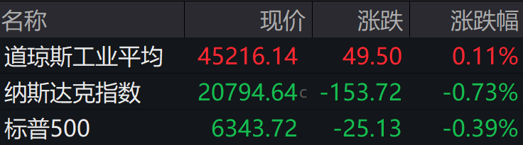 当地时间周一,美股高开低走。截至收盘,道指涨0.11%,纳指跌0.73%,标普500指数跌0.39%,连续第三个交易日收跌。