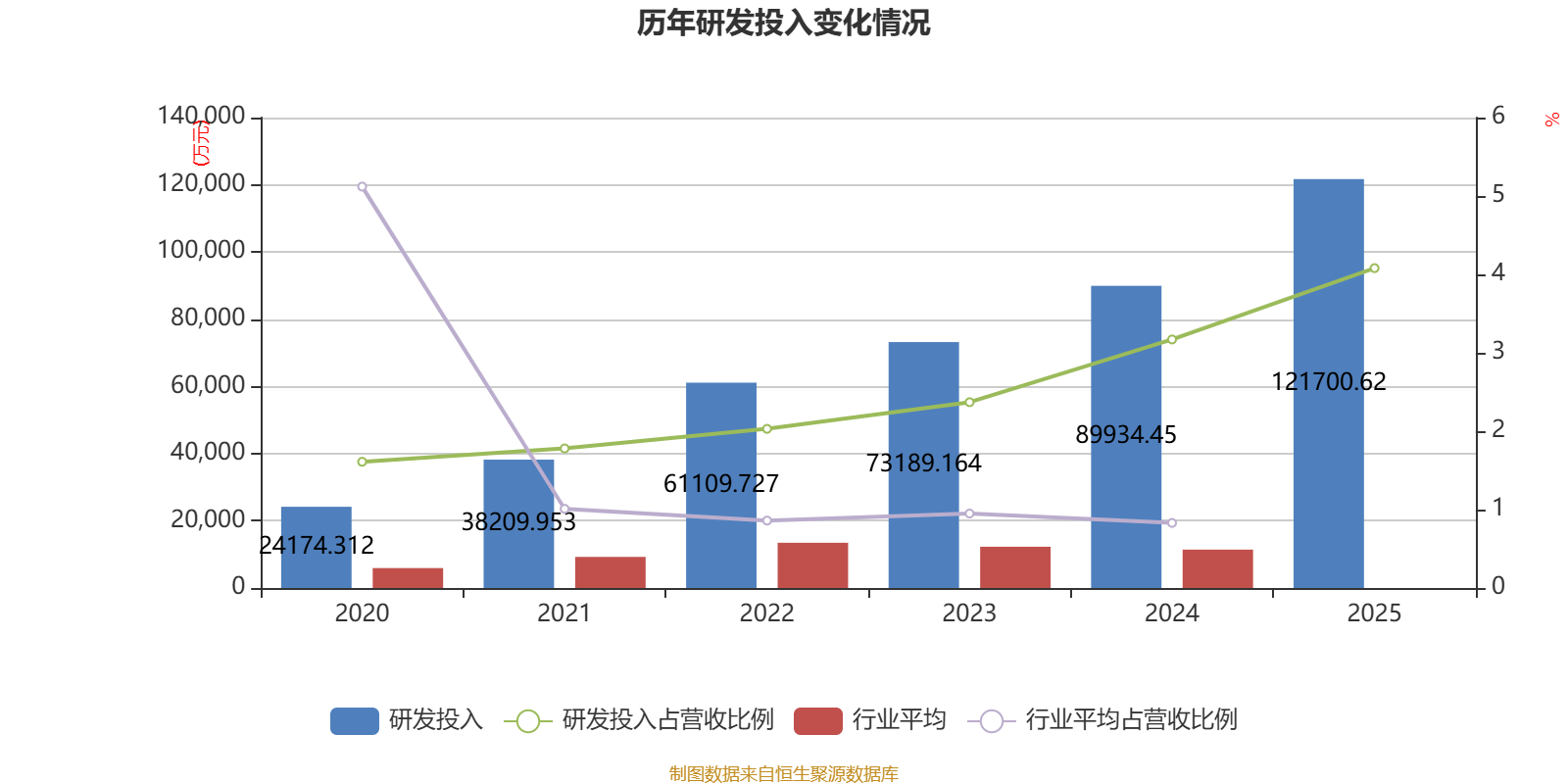 2025年全年,公司研发投入金额为12.17亿元,同比增长35.32%;研发投入占营业收入比例为4.08%,相比上年同期上升0.91个百分点。此外,公司全年研发投入资本化率为22.69%。