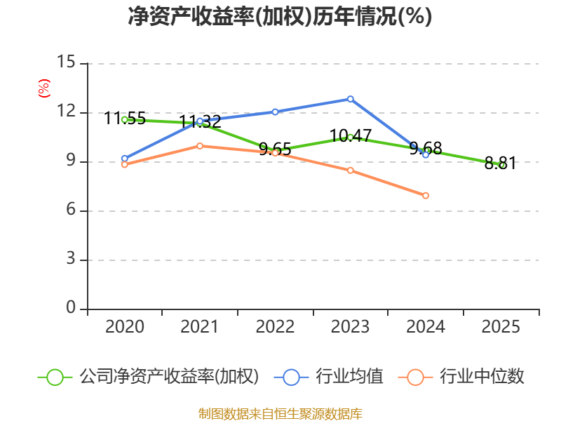 数据显示,2025年公司加权平均净资产收益率为8.81%,较上年同期下降0.87个百分点。公司2025年投入资本回报率为5.58%,较上年同期下降0.84个百分点。