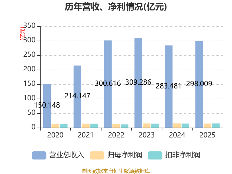 中证智能财讯深圳燃气(601139)3月31日披露2025年年度报告。2025年,公司实现营业总收入298.01亿元,同比增长5.12%;归母净利润14.08亿元,同比下降3.37%;扣非净利润14.44亿元,同比增长2.87%;经营活动产生的现金流量净额为36.1亿元,同比下降2.35%;报告期内,深圳燃气基本每股收益为0.49元,加权平均净资产收益率为8.81%。公司2025年度分配预案为:拟向全体股东每10股派现1.6元(含税)。