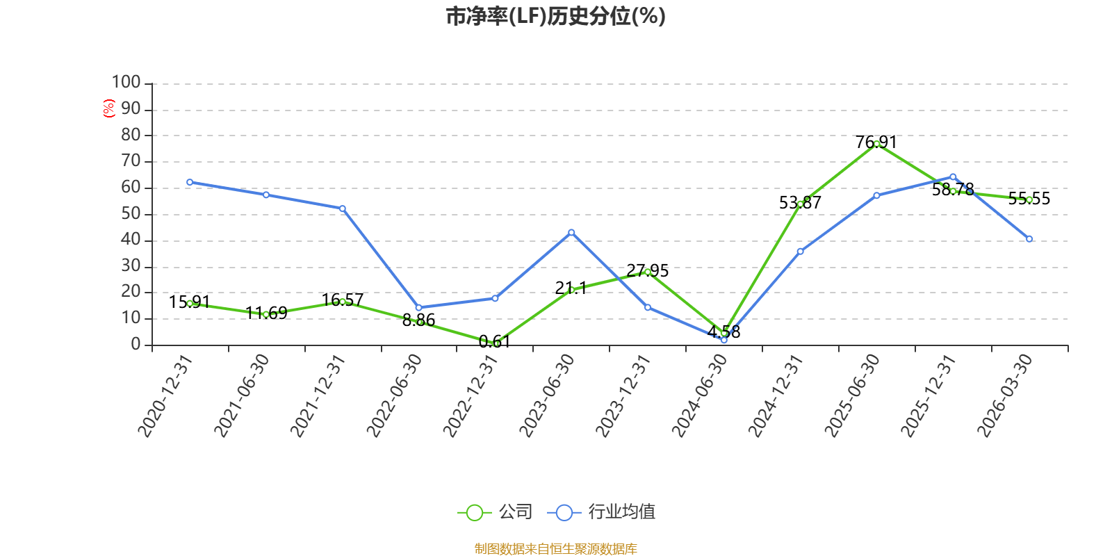 市盈率、市净率为负时,不显示当期分位数,会导致折线图中断。