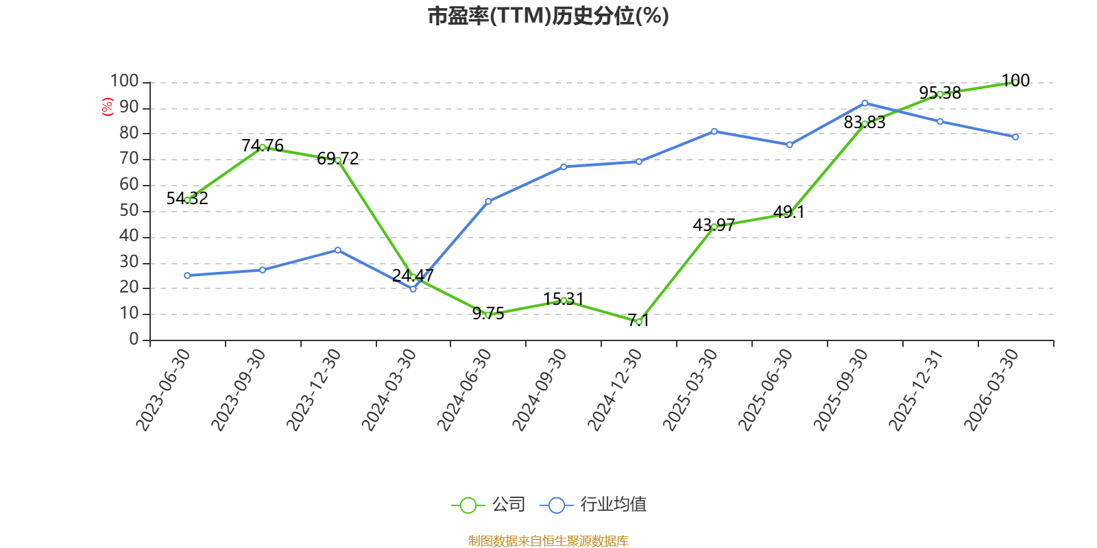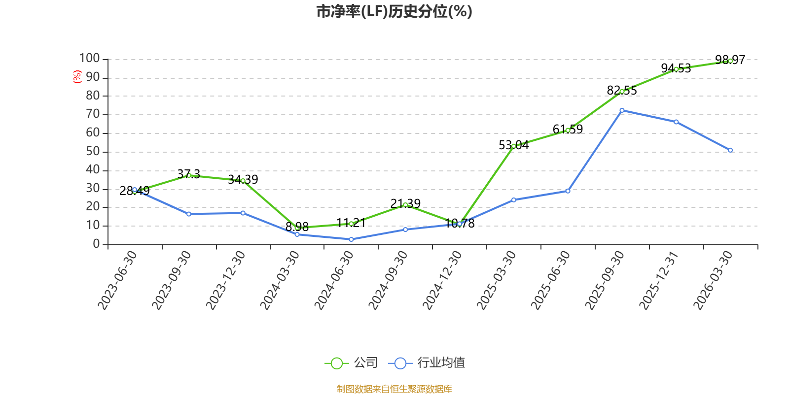 市盈率、市净率为负时,不显示当期分位数,会导致折线图中断。