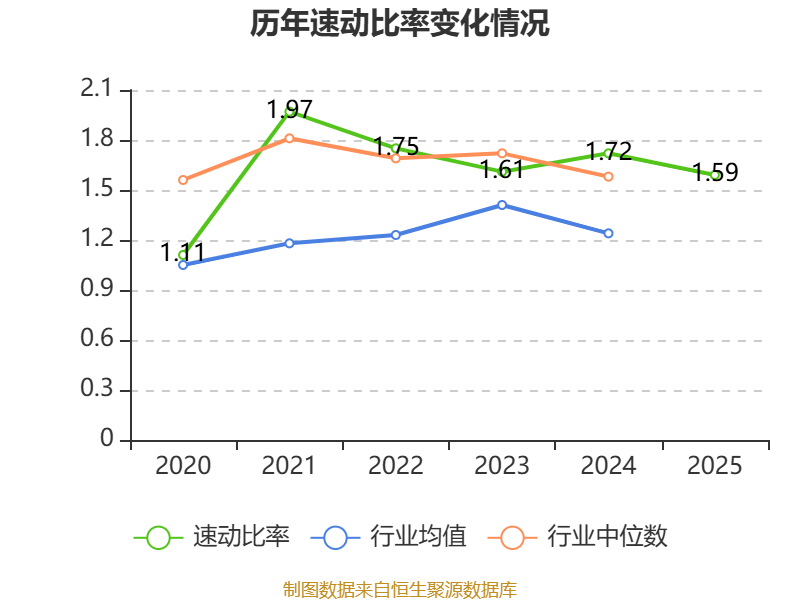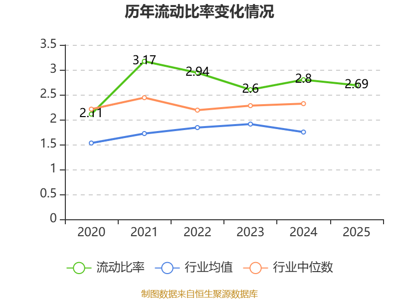 2025年,公司流动比率为2.69,速动比率为1.59。