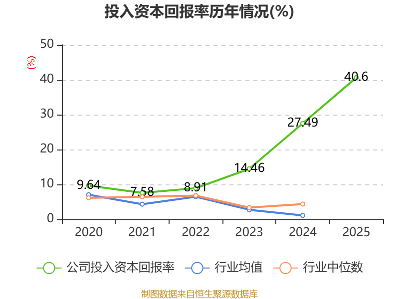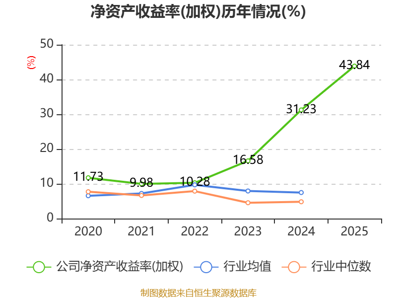 数据显示,2025年公司加权平均净资产收益率为43.84%,较上年同期上升12.61个百分点。公司2025年投入资本回报率为40.6%,较上年同期上升13.11个百分点。