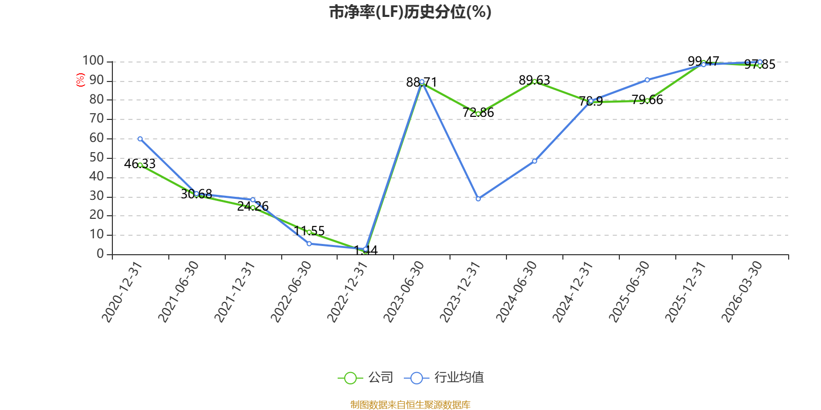 市盈率、市净率为负时,不显示当期分位数,会导致折线图中断。